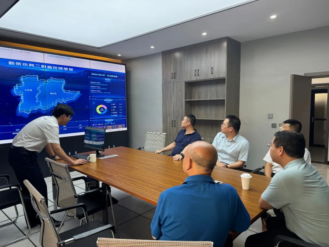 參觀后,在四樓會議室演示了我司二次供水監(jiān)控管理平臺。此前平臺進(jìn)行了一次升級,升級后可以實現(xiàn)泵房內(nèi)機器人自動巡檢、系統(tǒng)自動清洗泵房、異常警示可在手機進(jìn)行通知,謝局長一行對這個板塊頗為感興趣,并給予了肯定,通過這個平臺非常有效且有質(zhì)量地保障了居民生活用水。