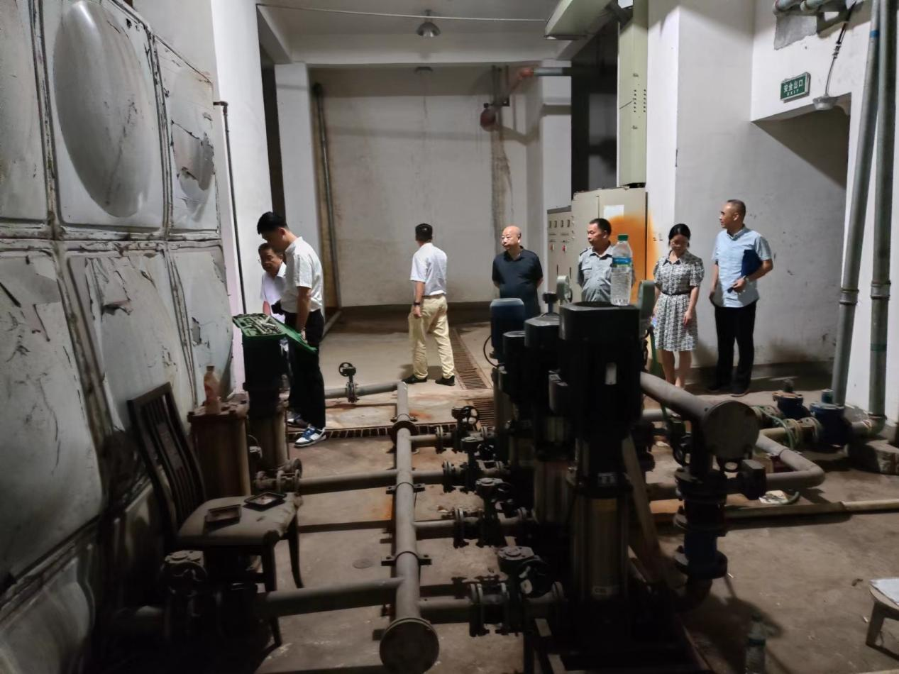 聽取何總匯報(bào)后鐘組長(zhǎng)、胡調(diào)研員等一行人帶著問(wèn)題到現(xiàn)場(chǎng)查看花樣年華小區(qū)、恒基廣場(chǎng)小區(qū)、地王廣場(chǎng)小區(qū)二次供水設(shè)備管理現(xiàn)狀情況。